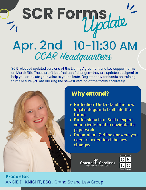 SCR released updated versions of the Listing Agreement and key support forms on March 9th. These aren't just "red tape" changes—they are updates designed to help you articulate your value to your clients. Register now for hands on training to make sure you are utilizing the newest version of the forms accurately.