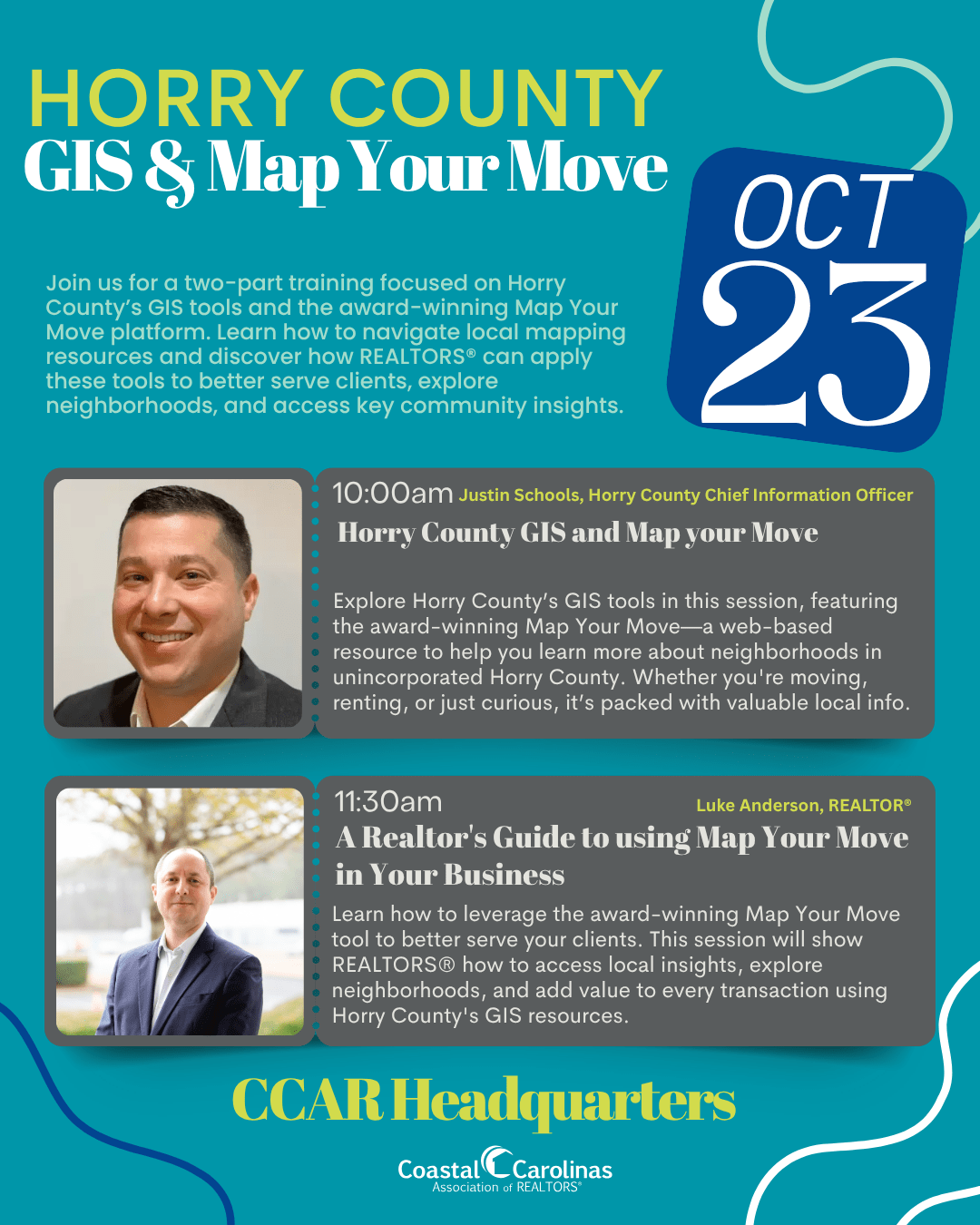 Explore Horry County's GIS tools in this session, featuring the award-winning Map Your Move - a web-based resource to help you learn more about neighborhoods in unincorporated Horry County. Whether you're moving, renting, or just curious, it's packed with valuable local info.